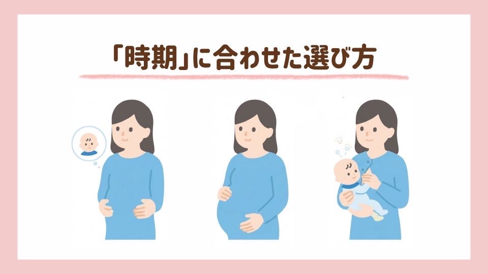 次に大切なのは、今の体調や悩みに合った設計かどうかです。妊活期・妊娠期・授乳期では、体の状態や感じやすい不調なども異なります。