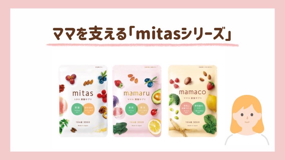 mitasシリーズは、妊活期〜授乳期までからだの「いま」に合わせて寄り添う葉酸サプリ。