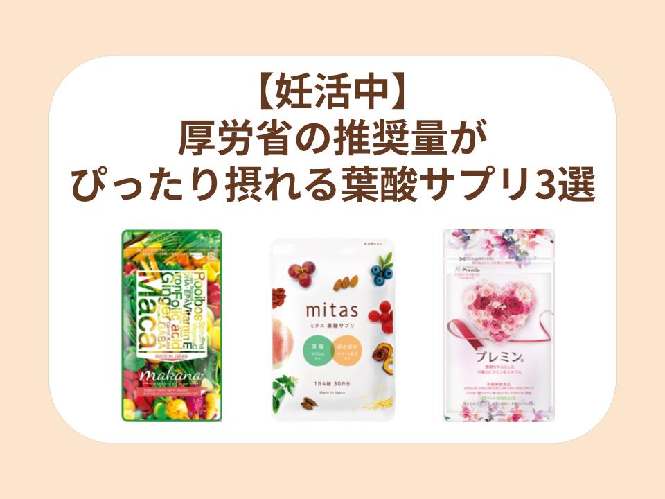 厚労省の推奨量がぴったり摂れる葉酸サプリ3選【妊活中】
