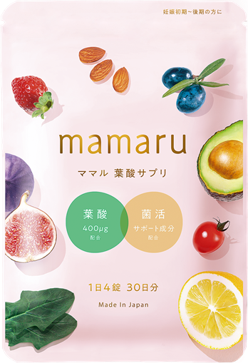 mamaru(ママル)は、妊娠中の女性に必要な栄養を効率よく補うために作られた葉酸サプリです。葉酸は、厚生労働省が妊娠初期に推奨する400µgを配合しつつ、鉄分やカルシウム、ビタミン類など、赤ちゃんの発育やママの体調維持に欠かせない栄養素をバランスよく取り入れられる設計となっています。